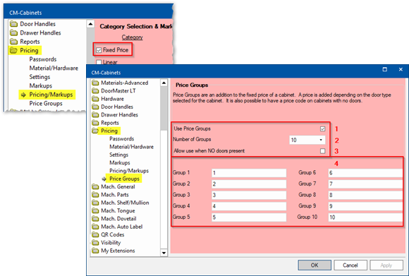 The relevant ‘Price Group’ can then be applied to each cabinet as per